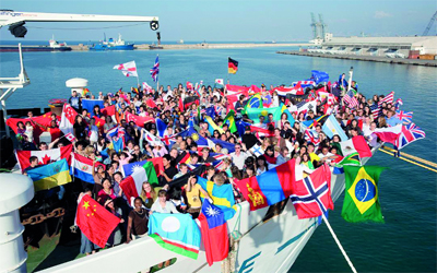 في سياق متصل، أكد المدير العام لسفينة «لوغوس هوب» جيان ولسر، أن «سفينة الأمل تعد نموذجاً حياً للتعايش السلمي، إذ يعكس مجتمع السفينة تعبيراً حقيقياً عن النيات الحسنة والتفاهم الدوليين، فكل شخص منهم له وظيفته ولا غنى عن أي منهم في المحافظة على استمرار تشغيل السفينة».