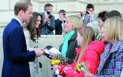 قام الأمير البريطاني ويليام وعروسه المستقبلية كيت ميدلتون أول من أمس، بزيارة مفاجئة إلى أيرلندا الشمالية، وسط إجراءات أمنية مشددة، في إطار جولة في بريطانيا قبيل زفافهما المقرر في 29 أبريل المقبل. وتغاضى الخطيبان عن المخاطر الأمنية المحتملة لهذه الزيارة، وسارا يتجاذبان أطراف الحديث مع المتفرجين، وتحدثا إلى أطفال صغار، وحاولا المشاركة في مسابقة تقليدية لقذف الفطائر.