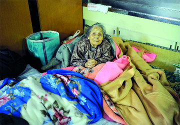 العجوز اليابانية بعد إنقاذها في محافظة مياغي. أ.ف.ب
