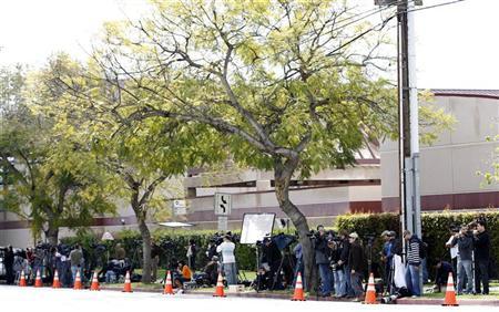 أعضاء وسائل الاعلام ينتظرون حفل تأبين عام لاليزابيث تيلور - رويترز