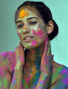 صورة للعارضة بونام أثناء الاحتفاليات بقدوم الربيع "هولي" - أ.ف.ب