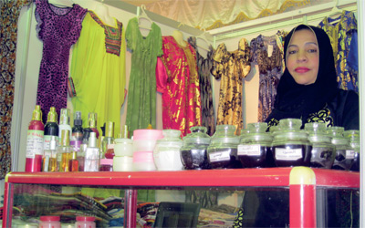 وأضافت: «هنا في هذا المحل الصغير أعرض منتجات محلية الصنع بل هي من نتاج يدي التي أقوم بصناعتها في منزلي، باعتباري عضوة في الأسر المنتجة ورحبت بي إدارة المهرجان فشاركت بعرض ما أنتجته من ملابس نسائية ومعها بالطبع بعض العطور التي لا تتوانى النساء عن شرائها متى كانت تتوافق مع الروائح المفضلة لها بصرف النظر عن مكان صنعها».