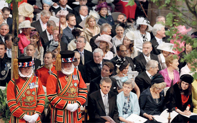 وقبالة الكاتدرائية نصب محبو العائلة المالكة منذ أيام الخيم. وقالت لويز اكيهورست (25 عاماً) «إنهما يجعلان العائلة المالكة رائجة مجددا». وكانت الملكة إليزابيث الثانية سبقت كيت الى الكاتدرائية قبل دقائق قليلة، وقد ارتدت الاصفر. وقد منحت قبل الظهر وليام وكيت لقب دوق ودوقة كامبريدج، وهو اللقب الاعلى في بريطانيا. وفي ختام القداس صعد وليام وكيت إلى عربة تجرها جياد استخدمها تشارلز وديانا العام .1981 وتبعت أربع عربات اخرى تنقل افراد العائلتين إلى قصر باكينغهام مقر الملكة اليزابيث الثانية، جدة وليام التي احتفلت قبل أيام بعيد ميلادها الـ.85