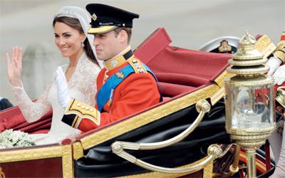 وكان الأمير وليام وكيت ميدلتون قد تزوجا أمس، في كاتدرائية ويستمنستر المهيبة وسط لندن، في ما يعرف بـ«زواج القرن»، الذي سمح للعائلة المالكة البريطانية بإبراز أبهتها أمام العالم بأسره، بعد 30 عاماً على زواج تشارلز وديانا. وتجمع مئات الآلاف من الأشخاص رغم السماء الملبدة بالغيوم في وسط لندن، الذي ازدان بالأعلام البريطانية.