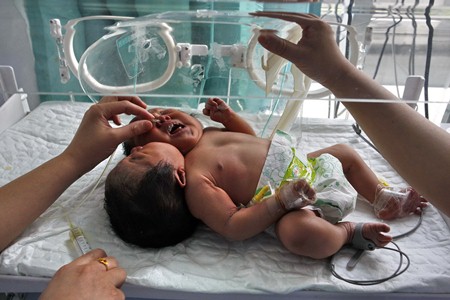 ونشرت صحيفة "تشاينا ديلي" صورة للتوأم المتصل، المولود في 5 مايو الجاري، وتم نقله إلى مستشفى في مقاطعة سيشوان لتلقي العلاج.