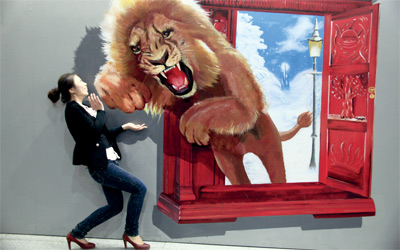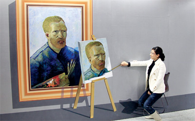 زائرة لأحد المعارض الفنية في العاصمة الصينية. ويمثل المعرض خطوة ريادية في مجال ما يعرف بالفن رباعي الأبعاد. وتستعد هذه الأعمال لجولة فنية عالمية، فقد بدأ ت هذه النوعية من الأعمال تحظى باهتمام تجار الفن وصالات عرض الأعمال في العالم.