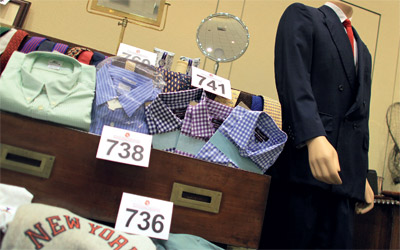 جانب من ألبسة مادوف الفاخرة معروض للبيع في المزاد. أ.ف.ب