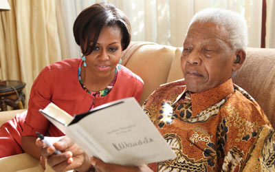واطّلعت السيدة الأميركية الأولى على مذكرات مانديلا وكتب ملاحظاته في فترة اعتقاله. وقدمت المؤسسة لها كتابا يتضمن أقوالاً لمانديلا من المقرر أن يصدر في 18 يوليو.