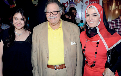 الفخراني يتوسط منى عبدالغني (يمين) ومروة عبدالمنعم بعد المؤتمر الصحافي. إي.بي.إيه