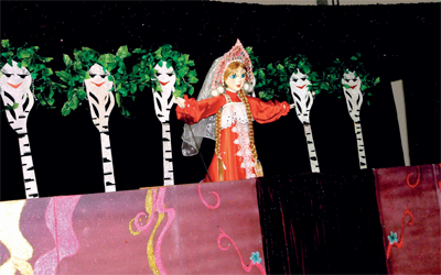 وسمي بمسرح العرائس لأن الدمية هي البطلة الأساسية، منها ما يحركها أشخاص بطريقة متخفية، ومنها عرائس الأراجوز التي تتحرك بالقفاز، وعرائس أخرى تتحرك بالخيوط والعصا، وعرائس خيال الظل التي يشاهد الجمهور ظلها فقط. وفي «عالم مدهش» يقدم العرض مُهرّجان يبدآن بمشاهد مضحكة، ثم ينطلق العرض، وتتنوع الدمى بين النمر والأميرة والورود ورقصة الأفاعي وغيرها، ليرووا قصصاً بأسلوب مضحك وشائق ينال إعجاب الجمهور الذي يصفق له طويلاً.