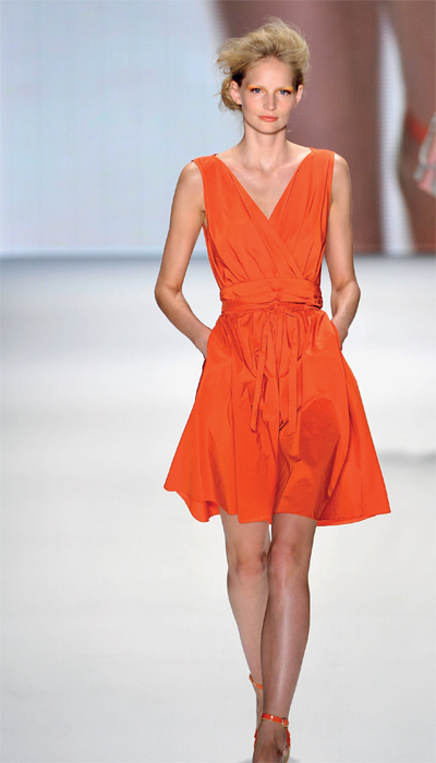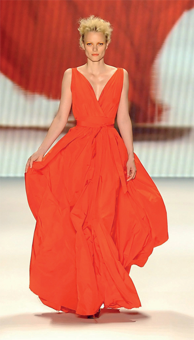 عارضات يقدمن آخر ابتكارات دار الأزياء«مينكس» للمصممة إيفا لوتز، التي ركزت على ألوان مثل الأحمر والوردي الفاتح والرمادي والأسود، وذلك خلال أسبوع برلين للموضة لربيع وصيف ،2012 الأسبوع الماضي