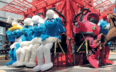 شخصيات «السنافر» تستمتع بألعاب فيراري الترفيهية. من المصدر