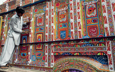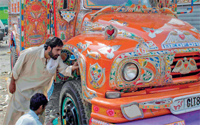 في مثل هذه الأوقات من كل عام ينشغل سائقو الشاحنات في باكستان بتزيين شاحناتهم برسومات مبتكرة وجميلة. وتمثل هذه الحرفة واحدة من أبرز العادات الشعبية الشهيرة في باكستان، وتعبر الرسومات عن الصعوبات التي يواجهها أصحاب الشاحنات في رحلاتهم الطويلة، إضافة إلى جمل وأدعية. وتستخدم في التزيين المواد «الفلورسنت»، وورق الفولاذ المقاوم للصدأ.