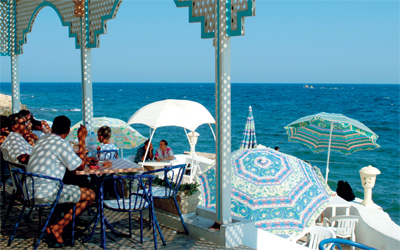 وفي قلب الصخور يقع مقهى سيدي سليم ذو اللون الأبيض البرّاق والذي يقدم إطلالة رائعة على ساحل مدينة المهدية. وهنا يحتسي السائح شاياً شرقياً ساخنا بالنعناع وذا مذاق حلو ولاذع، ويجول بنظره عبر البحر ذي اللون الأزرق الداكن، ويتطاير شعره بفعل رياح البحر. وتلفت السائح مهارة النادلين، الذين يرتدون زياً أنيقاً يتألف من اللونين الأبيض والأسود، في الحفاظ على الأطباق التي يحملونها أثناء مرورهم بين الطاولات التي يجلس عليها تونسيون يستمتعون بمنظر البحر.