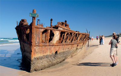 وبالقرب من إيلي كريك تتكسر الأمواج على حطام السفينة «Maheno»، التي وقعت ضحية لإعصار شديد، الذي يشكل حطامها اليوم أحد المعالم السياحية الجذابة بالشاطئ. وكان من المقرر نقل سفينة الركاب التي تم بناؤها عام 1905 إلى اليابان لتكهينها بعدما جرفها إعصار شديد وألقى بها على الساحل الأسترالي الشرقي عام ،1935 ولكن منذ ذلك الحين ينخر الصدأ في حطام السفينة وتغرق في أعماق الرمال يوماً بعد يوم. ويحظر على السياح بشكل صارم دخول حطام السفينة الذي يعلوه صدأ أحمر اللون، إذ تضع الشرطة وحراس المتنزه الوطني حطام السفينة تحت رقابة شديدة، ويحذر المرشد السياحي، جون ويلرت، قائلا: «من يتم إلقاء القبض عليه، يجب عليه دفع غرامات مالية كبيرة في الحال».