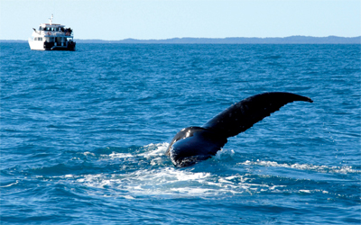 تعد الثدييات البحرية الضخمة سبباً آخر لكثير من السياح للسفر إلى جزيرة فريزر، فخلال الفترة من منتصف يوليو إلى نهاية أكتوبر تنطلق يومياً من هارفي باي الواقعة على اليابسة قوارب سياحية من أجل مشاهدة الحيتان.