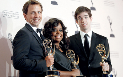 لقطات من حفل توزيع جوائز الأكاديمية الدولية للفنون والمعروفة بجوائز «إيمي» التي تمنح لأفضل العروض التلفزيونية الذي أقيم في لوس أنجلوس الليلة قبل الماضية.