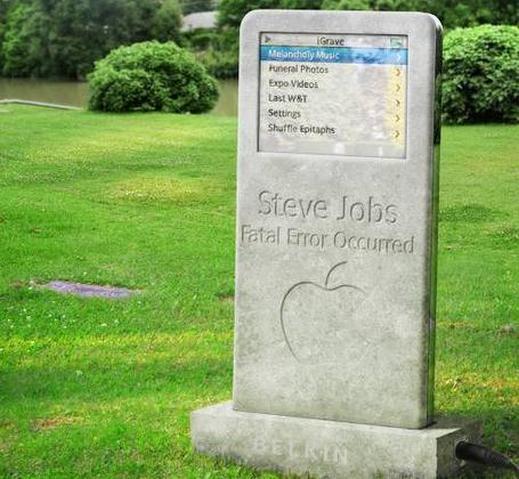وكتب على القبر من الخارج iGrave في إشارة للقبر بدلا من كلمة iPod .