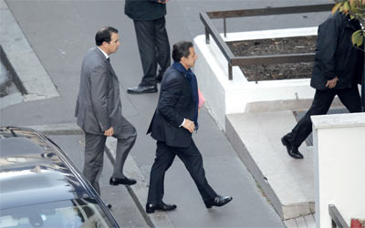 ساركوزي أمام عيادة لا ميوت للولادة في وسط باريس. أ.ف.ب