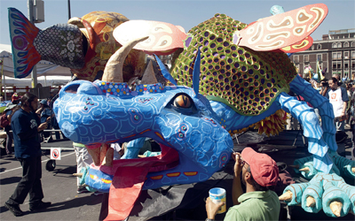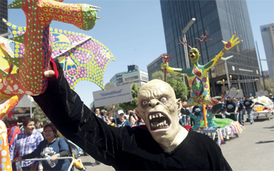 بدأت أول من أمس، في العاصمة المكسيكية فعاليات مهرجان « كائنات المكسيك»، الذي يعتمد على تجسيد شخصيات الحكايا الأسطورية في الذاكرة الشعبية المكسيكية. ويقام هذا المهرجان منذ سنوات بعيدة، ويعد من أهم الفعاليات الشعبية التي تحظى باهتمام شعبي واسع النطاق، خصوصاً أنه يقوم على تجسيد الحكايا والبطولات، والصراع التقليدي بين الخير والشر.