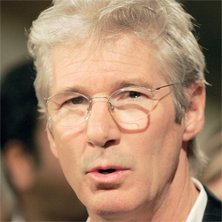 وشكر غير، البوذي والناشط السياسي المدافع عن التبت والدالاي لاما، العمدة أليمانو لدعمه قضية التبت التي تطالب بالحكم الذاتي.