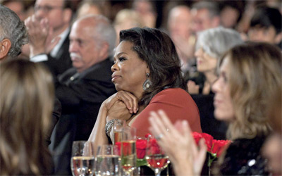 وتسلمت وينفري (57 عاماً) الجائزة في الحفل السنوي الثالث الذي أقامه مجلس حكام الأكاديمية بالقاعة الكبرى بمركز «هوليوود وهايلاند»، مساء أول من أمس، تكريماً لمبادراتها التعليمية ودعمها لقضايا المرأة والطفل في العالم. يشار إلى أن وينفري معروفة بأعمالها الإنسانية، ورُشحت من قبل لجوائز أوسكار، وسلّمت جائزة جون هيرشولت إلى كوينسي جونز، في حفل الأكاديمية الـ67 عام .1995