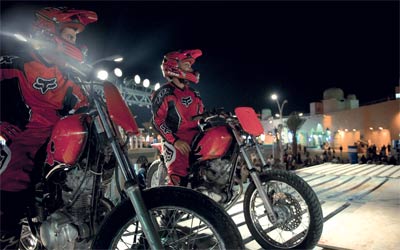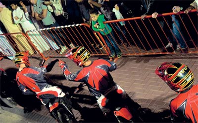 يشهد عرض عجلات الخطر في القرية العالمية إقبالاً كبيراً من الجمهور من مختلف الجنسيات والأعمار.