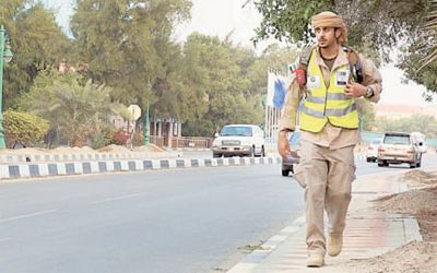 وصل الرحالة الإماراتي جلال بن ثنية، إلى العاصمة السعودية الرياض، أول من أمس، قادماً من منطقة الرويس الإماراتية، قاطعاً مسافة 1000 كيلومتر سيراً على الأقدام، في رحلة استغرقت 23 يوماً، وسيتجه بن ثنية إلى مكة المكرمة، التي يتوقع أن يصلها بعد نحو أسبوعين، مكملاً رحلته التي تهدف إلى دعم ذوي الإعاقة.