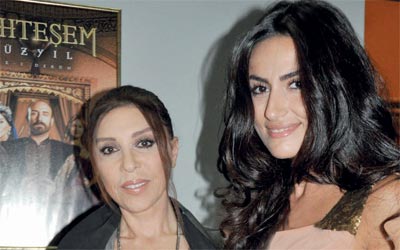المذيعة ديالا مكي مع الفنانة سيهري التي جسّدت دور أم السلطان سليمان القانوني. من المصدر