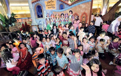 أطفال يتابعون «الشوكولاتة السحرية» في «الريف مول»