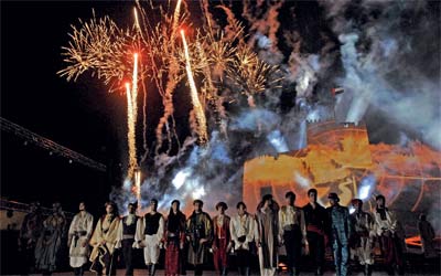 «يا لهذا البرد.. ويا لجمال حفل الافتتاح». هذه العبارة التي كانت تتردد بين ضيوف وجمهور حفل افتتاح الدورة الخامسة لمهرجان الفجيرة الدولي للمونو دراما، الذي أقيم أول من أمس، في ساحة قلعة الفجيرة. احتفالية كرنفالية مسرحية ضخمة بكل المعايير وصلت ذروتها مع عرض «الفجيرة.. العالم يمر من هنا»، الذي قدم فرجة بصرية مدهشة، استعرضت تاريخ الفجيرة والمنطقة والتحولات الأساسية في مسيرة قيادة الإمارات. العرض الذي كتب قصته وأشعاره محمد سعيد الضنحاني، وأعدّ موسيقاه وليد الهشيم، ورقصاته الاستعراضية لفرقة أورنينا، وإخراج إياد الخزوز، تداخلت فيه أحدث التقنيات البصرية ثلاثية الأبعاد مع الموسيقى والاستعراضات الراقصة لنكون في نهاية المطاف مع حدث فني على درجة كبيرة من التأثير والحرفية، إذ إن عرض افتتاح هذه الدورة من المهرجان ليس مجرد عرض فني عادي بل سيمثل علامة فارقة في مسيرة المهرجان، نظراً للإمكانات الفنية العالمية التي توافرت من أجل توثيق تاريخ المنطقة بمنظور بصري على درجة كبيرة من التطور والإدهاش.
