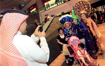 مشاهد من دون حصر، تستحق التسجيل هاهنا، تتمنى كزائر للمكان أن تبطئ شريط الزمن، لتمسك بكل اللحظات الجميلة: فنانون يوزعون الابتسامات بطعم السكر، ويفيضون بالمرح على الجميع، طفلة تكاد تشب من على كتفي والدها لتصل إلى «عملاق ظريف» على عصي خشبية، يشاغل الصغيرة من عل، جمهور، من كل الجنسيات، يتزايد كل ثانية، يتسابق الحضور في التقاط صور تذكارية، وللصورة في هذا الحيز بسمة خاصة لا يستطيع المرء أن يصطنعها، هي طبيعية من القلب، ينسجم الجميع في أجواء فرحة، تغيب اللغات الكثيرة التي يلتقطها هواء دبي، وتحضر لغة واحدة، ابتسامة تنير الوجوه، وتصدّق على شعار «دبي للتسوق»: «عالم واحد.. عائلة واحدة».