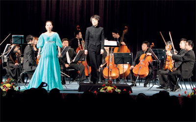 كل شيء كان أشبه بالنتائج المختزلة في الحفل الموسيقي الذي أحيته الفرقة السيمفونية لأوبرا بكين الوطنية، أول من أمس، في مؤسسة سلطان بن علي العويس الثقافية. 90 دقيقة اختزلت تراثاً موسيقياً مرتبطاً بالفرقة العريقة الذي يزيد عمرها على 60 عاماً، فضلاً عن عراقة الفنون الأوبرالية الصينية وتنوعها، مروراً وليس انتهاء بطفلة سورية في عامها الخامس تدعى (شام)، خطت بخطوات الكبار الواثقة على خشبة المسرح، لتقدم باقات ورود حمراء إلى العازفين المهرة، عقب انتهاء الحفل.