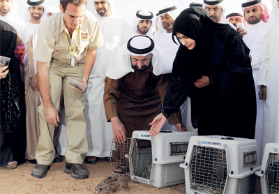 حاكم الشارقة يطلق مجموعة من الحيــــوانات البرية في محمية الظليما