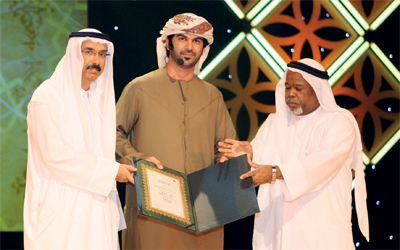 جاء ذلك خلال احتفال شهته ندوة الثقافة والعلوم، مساء أول من أمس، وبعيداً عن آليات تحليل النتائج، أو التطرق إلى أسئلة ترتبط بآليات تطويرها، وغيرهما من مكامن الجدل، اختارت وزارة الثقافة والشباب وتنميـة المجتمـع أن تطـوي فعاليات الدورة التاسعة من جائزة البردة الثقافية باحتفال ثانٍ، تم استثمار تزامنـه مع الاحتفالات بذكري المولد النبوي الشريف، لتكريم الفنانين المشاركين فيه، مساء أول من أمس، على مسرح ندوة الثقافة والعلوم بدبي، بحضور وكيل الوزارة المساعد للثقافـة والفنون في وزارة الثقافـة، بلال البدور.