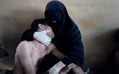 فازت صورة من الربيع العربي لامرأة محجبة في اليمن، تحتضن أحد أقاربها الجرحى، التقطها المصور الفوتوغرافي الإسباني سامويل أراندا لصحيفة «نيويورك تايمز»، بأكبر جائزة للتصوير الصحافي في العالم، أمس.