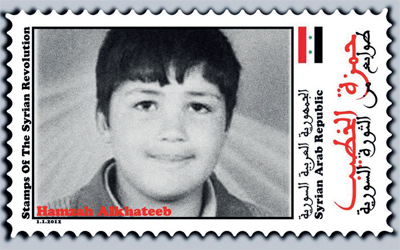 واذا كانت صور الهواتف المتحركة، والتقارير المصورة لقنوات تلفزيونية، تمكن صحافيون فيها من التسلل الى سورية، توثق جوانب من حراك الدم والحرية، فإن الثورة لم تتوقف عن اجتراح اشكال جديدة، لم تظهر في الثورات التونسية والمصرية والليبية واليمنية، إذ اختار فنان سوري، لم يكشف عن هويته لدواع أمنية، تصميم طوابع بريدية تعد توثيقاً لأحداث الثورة، وتكريماً لأماكن وبلدات ومدن وشخصيات مؤثرة فيها. ففي الأول من يناير الماضي ظهرت على موقع التواصل الاجتماعي «فيس بوك» صفحة «طوابع من الثورة السورية» تضم حتى الآن 76 طابع بريد، كان أولها للشهيد الطفل حمزة الخطيب، أحد ايقونات الثورة، وهو من بلدة الجيزة في محافظة درعا، تعرض للتعذيب والقتل على أيدي قوات الأمن السورية في مايو من العام الماضي. وجاء أحدث طابع بريد للطالبة الجامعية بهراء حجازي التي لاتزال معتقلة لدى أمن النظام منذ الثاني من فبراير الجاري، وهي ابنة الروائي عبدالنبي حجازي، وتدرس في كلية الفنون الجميلة.