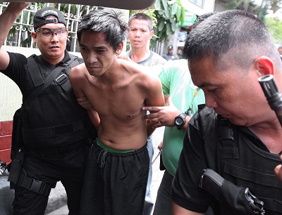 الاب كارلو سواريز أثناء اعتقاله من قبل الشرطة الفلبينية - اي.بي.ايه