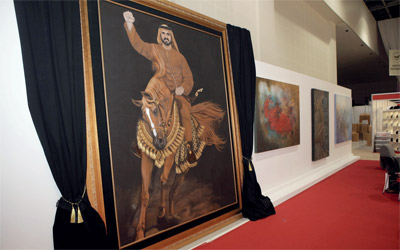 ومن بين أكثر اللوحات المعروضة تميزاً لوحة يظهر فيها صاحب السمو الشيخ محمد بن راشد آل مكتوم، نائب رئيس الدولة، رئيس مجلس الوزراء، حاكم دبي، وهو يمتطي أحد جياده، ويصل طولها إلى 3.5 أمتار وعرضها 2.7 متر، وهي من أعمال الفنان الإيراني محمد رأفت، الذي تتميز لوحاته بالحيوية وجمال الألوان والرشاقة، وقد حظي جناحه في اليوم الأول بإقبال لافت ومردود رائع من الزوار الذين قام أحدهم بحجز ثلاث لوحات في الساعات الأولى للمعرض. وتراوح أسعار لوحاته بين 35 ألفاً و350 ألف درهم للوحة الواحدة، وقد كان الفنان الذي حصل على جوائز عدة في مسابقات محلية في طهران، ينوي المشاركة بمجموعة ضخمة من اللوحات، إلا أنه تعرض لحادث في منطقة القوز قبل بداية المعرض بأيام، أدّى إلى اندلاع النار في معظم لوحاته.