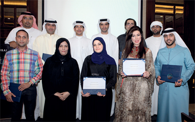 المكرّمون في لقطة جماعية مع أحمد المنصوري. من المصدر