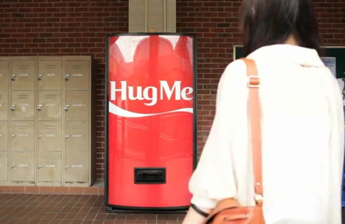 ابتدعت إحدى شركات المشروبات الغازية العالمية آلة بيع جديدة تتطلب فقط من المارة معانقتها للحصول على بعض المشروب مجانا.