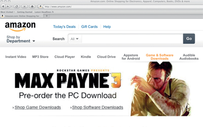 يقدّم موقع أمازون، للتسوق الالكتروني في الوقت الحالي، خدمة تحميل ألعاب فيديو وبرمجيات تعمل على أجهزة الكمبيوتر الشخصي وأجهزة ماك الالكترونية. وأعلن الموقع أنه سيكون من الممكن تحميل البرامج والتطبيقات فور سداد قيمتها.