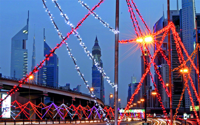 وتم تزيين العديد من الشوارع في الإمارة، خصوصا الشوارع المحيطة بمركز دبي التجاري العالمي الذي يستضيف «عالم مدهش»، مثل شارع الشيخ زايد، وشارع زعبيل، ومعبر الخليج التجاري، وشارع الخيل، وشارع الثاني من ديسمبر، وشارع الوصل، وجسر مركز دبي التجاري العالمي، إضافة إلى شارع المطار وجسر آل مكتوم، والقرهود، وغيرها العديد من المناطق الأخرى في دبي.