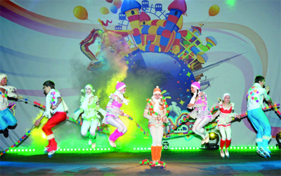 وترتفع أعلام القارات الخمس التي تمثل بلدان العالم جميعا، والتي تشارك بشكل مستمر في الألعاب الأولمبية، كما تبدأ المفاضلات في اختيار البلد المضيف للأولمبياد، بشكل ترفيهي مضحك وممتع. ويمكن للزوار متابعة العرض يوميا الساعة الخامسة والنصف أيام السبت والإثنين والثلاثاء والأربعاء والسادسة و10 دقائق مساء الخميس والجمعة.