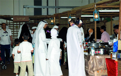 أطباق من الهريس والثريد واللقيمات تملأ ركن التراث، ويتسارع الزوار لشرائها وتذوقها، كأن هناك حدثاً احتفالياً كبيراً، وتقدم في الركن أيضاً أنواع مختلفة من أشهر المأكولات والحلويات الشعبية الإماراتية التي تقوم بصناعتها الأسر المنتجة التي تدعمها الهيئة وتقدم لها المكان بأسعار رمزية، تشجيعاً منها لمثل هذا النوع من الأنشطة.