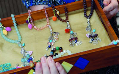 في المقابل ارتأت مصممة المجوهرات العراقية زينب إسكندر الاعتماد على فكرة أخرى في المسابح، وتطويعها لتصبح جزءاً من الإكسسوار، فقدمتها على شكل أقراط وأساور، معتمدة على الأحجام الصغيرة.