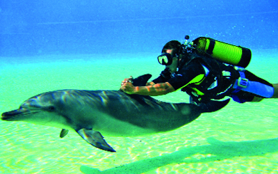 بالتعاون مع مركز «ألبوم» للغوص في منتجع «أتلانتس النخلة» في دبي، أطلق خليج الدلافين في المنتجع تجربة جديدة مع الدلافين، تُمكّن من الغوص مع الدلافين الموجودة بالمنتجع، من خلال تجربة «تعلم الغوص مع الدلافين»، التي تستمر حتى 30 أكتوبر المقبل. وتضمن المشاركة في التجربة حصول المشاركين على ترخيص غوص «بادي»، قبل الشروع فيها.