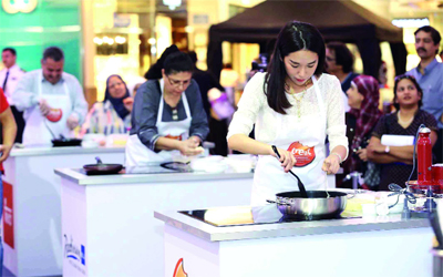 طهاة من مطابخ عالمية يستعرضون مهاراتهم في المهرجان. من المصدر