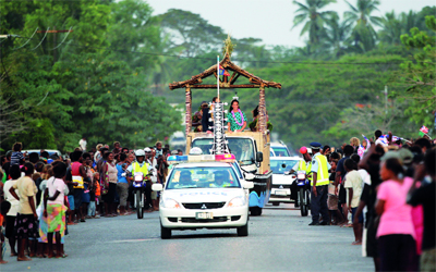 نحى الأمير ويليام وزوجته كيت قضية الصور التي انتهكت خصوصية دوقة كمبريدج جانباً، ليستمتعا بلقاء آلاف من سكان جزر سليمان خلال زيارتهما أمس. وقام ويليام نجل ولي عهد بريطانيا الامير تشارلز، والثاني في ترتيب عرش البلاد وقرينته بزيارة لمكتب رئيس وزراء جزر سليمان جوردون دارسي، قبل مشاهدة عرض للثقافة المحلية من الاقاليم المختلفة في جزر سليمان. وألقى الامير كلمة أمام 40 مندوباً عن الشباب في «مؤتمر شباب الكومنولث». ووصل ويليام وكيت مساء الأحد إلى جزر سليمان، وبعد استقبال تقليدي استقل الاثنان سيارة مكشوفة على شكل قارب تقليدي مزودة بمظلة على شكل ورقة شجر تجوّلا بها في أنحاء العاصمة، حيث رحب بهما نحو 50 ألف شخص.