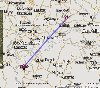 وأظهر حساب على فيسبوك يتتبع منه المستخدمون رحلاته أن "الطيار اندريا سيرلو" سافر من مطار ميونيخ إلى تورينو في 23 اكتوبر 2011.